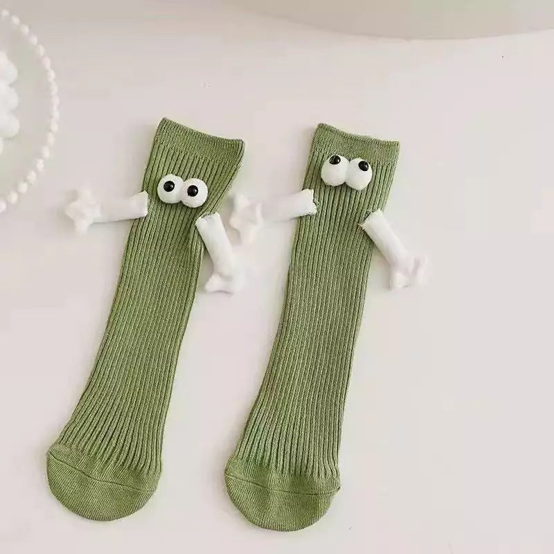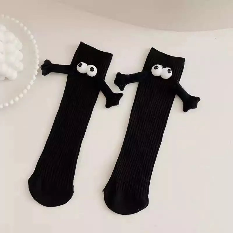 Connect in a fun and whimsical way with magnetic hands that join when standing side by side. Cute eye designs add character and playfulness. Let your socks reflect the joy and happiness you share with your loved one!